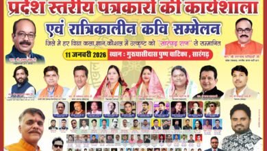 गुरु घासीदास पुष्पबाटिका में 11 जनवरी को सम्मान, संवाद और साहित्य का विराट संगमप्रदेश स्तरीय पत्रकार कार्यशाला, रात्रिकालीन कवि सम्मेलन…