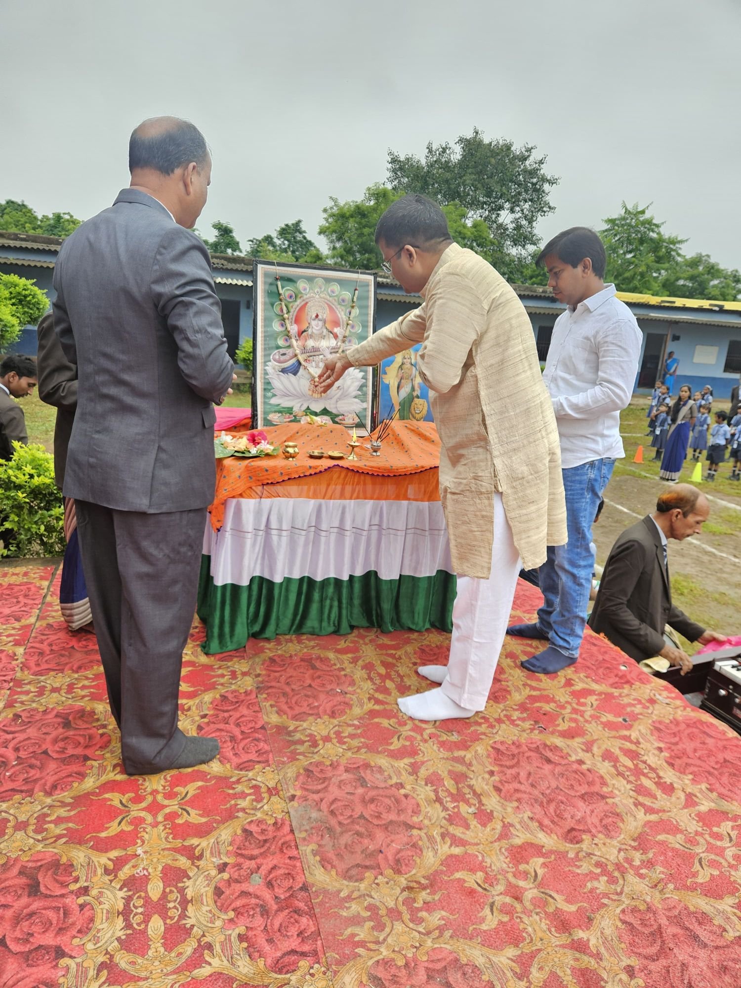 कार्यक्रम की शुरुआत सुबह की पहली किरण के साथ राष्ट्रगान से हुई, जिसमें स्कूल के नन्हें-मुन्ने बच्चों, छात्रों, शिक्षकों और अन्य उपस्थित लोगों ने उत्साहपूर्वक भाग लिया। तिरंगा फहराते हुए राष्ट्रगान की धुन ने सभी में जोश भर दिया, और पूरे वातावरण को देशभक्ति की भावना से सराबोर कर दिया। कैलाश नायक ने तिरंगे को फहराते हुए देश के वीर शहीदों को नमन किया और उनके बलिदान को याद किया।