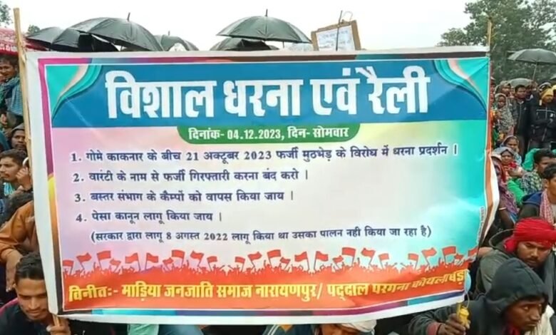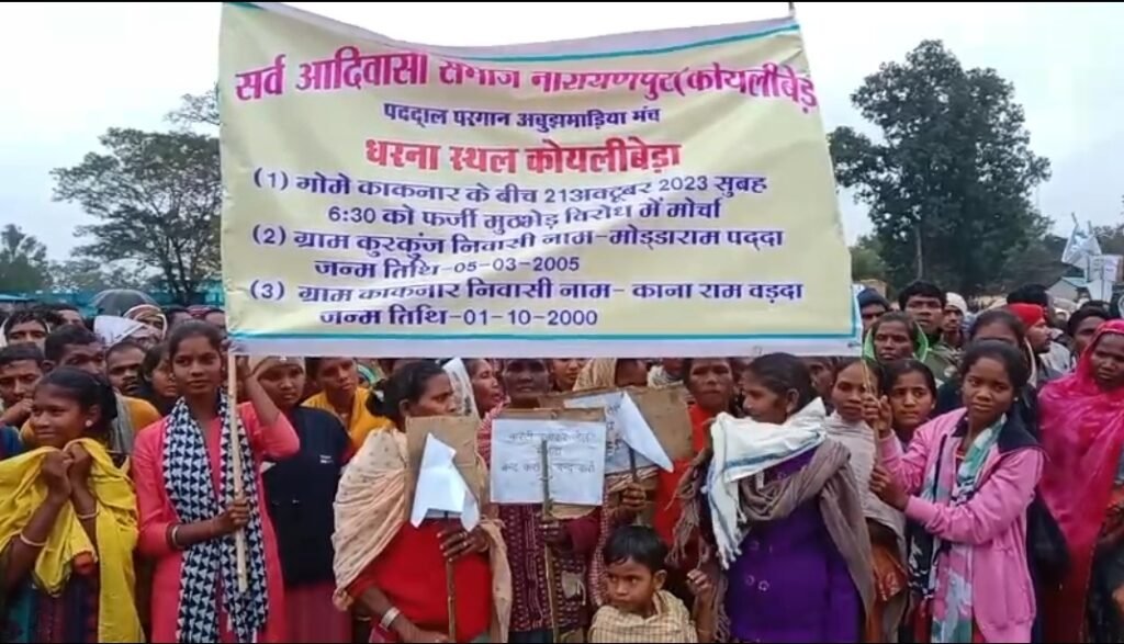 अंतागढ़/ 21 अक्टूबर को हुए मुठभेड़ में मारे गए आदनार निवासी काना वेद्दा और मोडा राम पद्दा नाम के युवकों को नक्सली बता कर बस्तर फाइटर DRG और BSF के टीम के द्वारा फर्जी एनकाउंटर किए जाने को लेकर गंभीर आरोप लगाते हुए आज कोइलीबेड़ा में प्रदर्शन किए वही आदिवासी समाज द्वारा कहा गया अगर दोषी अफसरों पर कार्यवाही नही होगी तो उग्र आंदोलन किया जाएगा।