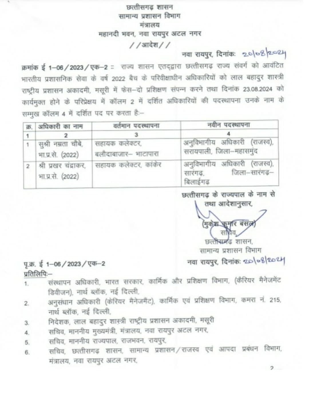 सारंगढ़ ने एसडीएम के पद पर आईएएस की नियुक्ति की है। 2022 बैच के आईएएस प्रखर चंद्राकर को सारंगढ़ का नया एसडीएम नियुक्त किया गया है। वे अभी कांकेर में सहायक कलेक्टर के पद पर कार्यरत है।