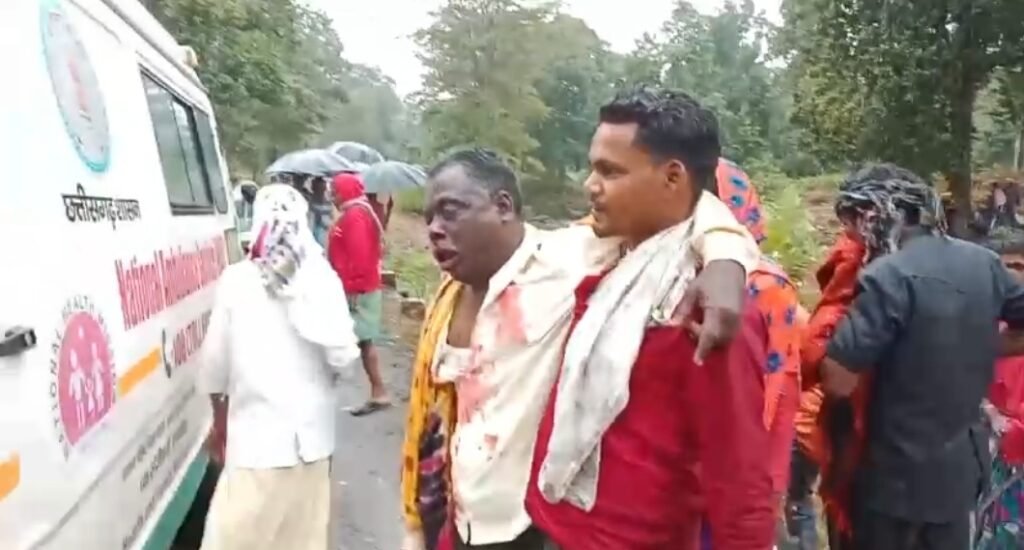 घायलो को 108 की मदद से लाया जा रहा अंतागढ़ सामुदायिक स्वास्थ्य केंद्र,,,