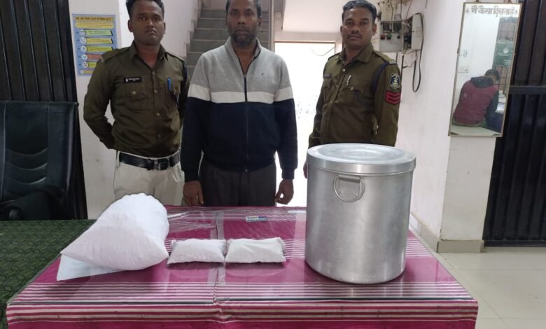 एक सिल्वर ड्रम में रखे अवैध मादक पदार्थ गांजा 01 किलो पुलिस ने रंगे हाथों पकड़ा।