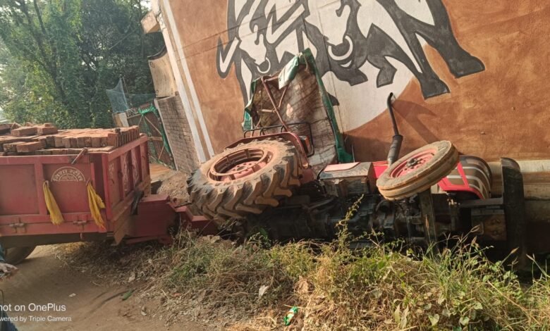 शनि मंदिर के पास बड़ा हादसा टला, नाली में पलटा ट्रैक्टर – चालक ने कूदकर बचाई जान