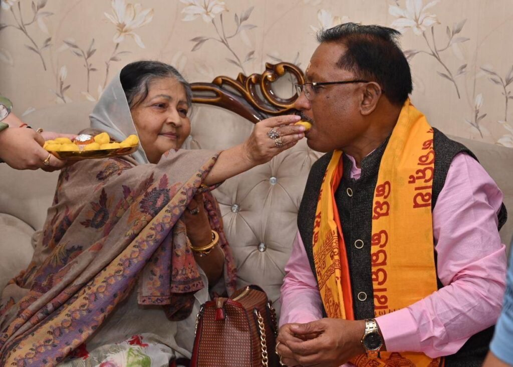 श्रीमती माधवी देवी ने मुख्यमंत्री साय का मुंह मीठा कराकर उन्हें आशीर्वाद प्रदान किया। इस अवसर पर प्रबल प्रताप सिंह जूदेव सहित परिवार के सदस्य उपस्थित थे।