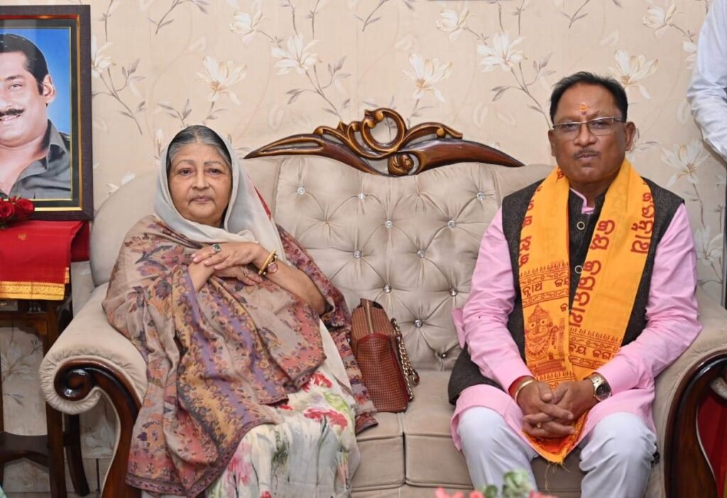 रायपुर/छत्तीसगढ़ के नए मुख्यमंत्री विष्णु देव साय ने आज राजधानी रायपुर के धरमपुरा स्थित जूदेव परिवार के निवास पहुंचकर वहां पूर्व केन्द्रीय मंत्री स्वर्गीय दिलीप सिंह जूदेव की धर्मपत्नी श्रीमती माधवी देवी से सौजन्य मुलाकात की और उनका आशीर्वाद ग्रहण किया।