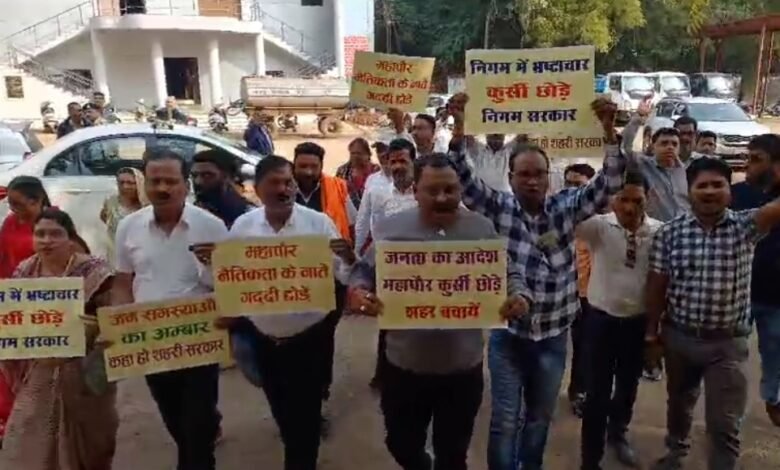 दुर्ग/ चुनाव में कांग्रेस प्रत्याशी अरुण वोरा के जबर्दस्त हार के बाद नगर निगम के भाजपा पार्षदों ने शहर की कांग्रेस सरकार के खिलाफ मोर्चा खोल दिया है बीजेपी कार्यालय में हुई भाजपा पार्षद दल की बैठक के तुरंत बाद सभी पार्षद एकजुट होकर निगम कार्यालय पहुंचे जहां महापौर धीरज बाकलीवाल पर जोरदार हमला बोलते हुए उनसे नैतिकता के आधार पर इस्तीफे की मांग करते हुए उनके चेंबर के सामने तख्ती लटकाकर विरोध दर्ज कराया गया।
