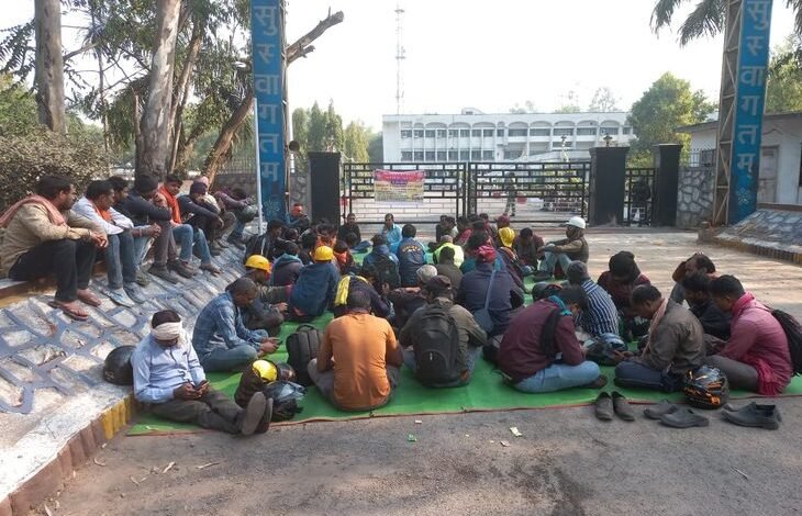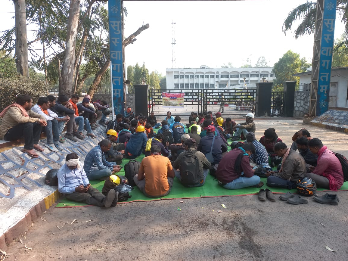 Gevra mine employees go on strike demanding equal pay in Korba | कोरबा गेवरा खदान के कर्मचारियों ने किया काम बंद हड़ताल: समान वेतन देने की कर रहे मांग, CGM कार्यालय के बाहर ठेकाकर्मियों का प्रदर्शन – Korba News