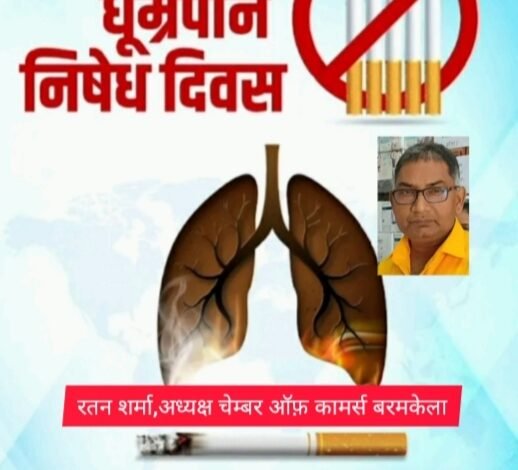 बरमकेला।विश्व धूम्रपान निषेध दिवस के अवसर पर समाजसेवी, निक्षय मित्र एवं चेम्बर ऑफ़ कामर्स के पदाधिकारी रतन शर्मा ने धूम्रपान के खतरों के बारे में जागरूकता फैलाने के लिए लोगों को प्रेरित किया और इससे होने वाले नुकसान के बारे में बताया।वहीं आये दिन हो रही दुर्घटनाओं का सबसे बड़ा कारण बताते हुए अपने एवं परिवार की सुरक्षा एवं हित के लिए धूम्रपान से दूर रहने का आव्हान किया है।