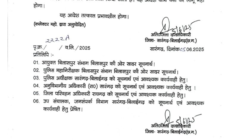 *कलेक्टर कार्यालय सारंगढ़ बिलाईगढ़ से आदेश जारी*
