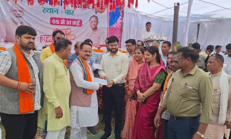 सारंगढ़ बिलाईगढ़, / बरमकेला ब्लॉक के ग्राम पंचायत बार में आयोजित समाधान शिविर वनांचल क्षेत्र के समितियों के लिए सौगात भरा रहा। आदिम जाति एवं अनुसूचित जाति विकास (आदिवासी विकास) विभाग द्वारा 239 वन अधिकार समितियों को 3 लाख 423 रूपए और 40 वन संसाधन समितियों को 3 लाख 1 हजार 840 रूपए का चेक प्रदान किया। अतिथियों ने इन दोनों चेक का वितरण सीईओ अजय पटेल जनपद पंचायत बरमकेला को सौंपे। इस अवसर पर ज्योति पटेल, बार के सरपंच तेजराम सहित अन्य अतिथि व अधिकारीगण उपस्थित थे।