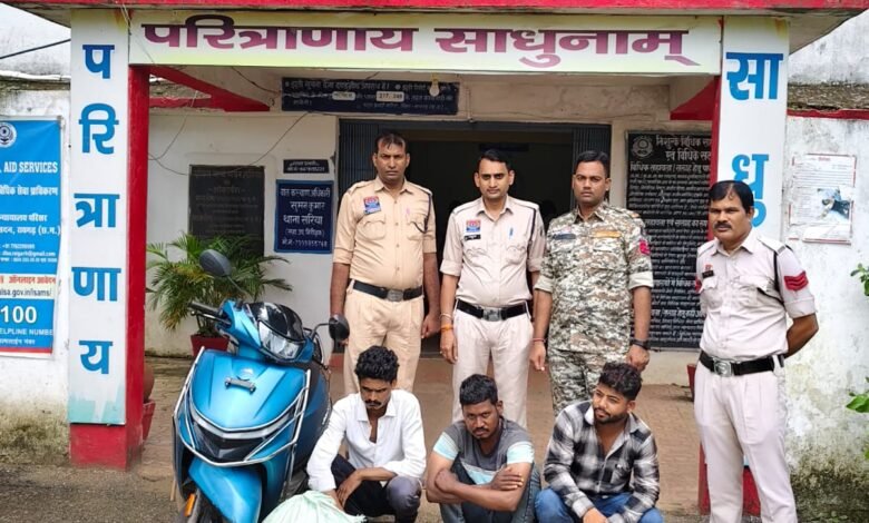 पुलिस अधीक्षक आंजनेय वार्ष्णेय के द्वारा जिले के सभी थाना/चौकी प्रभारियों को जुआ, सट्टा, शराब, अवैध मादक पदार्थ गांजा में संलिप्त व्यक्तियों के उपर कड़ी से कड़ी कार्यवाही करने की निर्देश पर अति0 पुलिस अधीक्षक  श्रीमती निमिषा पाण्डेय एवं उप पुलिस अधीक्षक मुख्यालय सारंगढ़  अविनाश मिश्रा के कुशल मार्गदर्शन में थाना प्रभारी प्रमोद यादव के नेतृत्व मे दिनांक 4/08/2025 को जरिये मुखबीर सुचना पर  ग्राम खैरगढ़ी,नाला पुल के पास मेन रोड में घेराबंदी कर  ओड़िशा से टीवीएस स्कूटी में आ रहे 02संदिग्ध व्यक्तियों के कब्जे से स्कूटी में सफेद बोरी में रखा हुआ 05 पैकेट मादक पदार्थ गांजा कुल 11किलो 655 ग्राम एवं घटना मे प्रयुक्त 02 नग मोबाईल एवं एक टीवीएस स्कूटी  कुल जुमला किमती लगभग 216000 रूपये को जप्त किया गया। दौरान विवेचना आरोपियों से पूछताछ करने पर  राकेश साहू उर्फ़ राहुल  हाल निवासी चांदमारी जिला रायगढ़ को गांजा ले जाकर बिक्री करना बताया गया ।आरोपी राहुल साहू को हिरासत में लेकर पूछताछ करने पर दोनों आरोपियों से लगातार गांजा मंगाकर खरीदना स्वीकार किया। तीनों आरोपीगण के विरूद्ध थाना सरिया मे  अप क्र 175/25 धारा 20 B ndps एक्ट का अपराध पंजीबद्ध कर ,विधिवत कार्यवाही करते हुए आरोपीगणों को न्यायिक रिमांड पर जेल भेजा गया है।