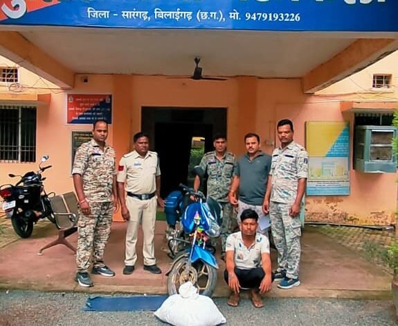 **मामले का संक्षिप्त विवरण जिला सारंगढ़-बिलाईगढ़ के पुलिस अधीक्षक महोदय सारंगढ़-बिलाईगढ़ ( आंजनेय वार्ष्णेय) के द्वारा जिले के सभी थाना/ चौकी प्रभारियों को जुआ, सट्टा, शराब, अवैध मादक पदार्थ गांजा में संलिप्त व्यक्तियों के उपर कड़ी से कड़ी कार्यवाही करने निर्देशित किया गया है। इसी कड़ी में श्रीमान पुलिस अधीक्षक महोदय के निर्देशन में तथा अति० पुलिस अधीक्षक सारंगढ़-विलाईगढ़ (श्रीमती निमिषा पाण्डेय) एवं उप पुलिस अधीक्षक सारंगढ़ ( अविनाश मिश्रा) के कुशल मार्गदर्शन में दिनांक 07/10/2025 को मुखबीर की सुचना पर 4.860 किलोग्राम अवैध मादक पदार्थ गांजा एवं तस्करी में प्रयुक्त एक बजाज डिस्कवर मोटर साइकिल कुल जुमला कीमती 136000 रुपये के साथ एक आरोपी को गिरफ्तार करने में सफलता हासिल हुई है।**