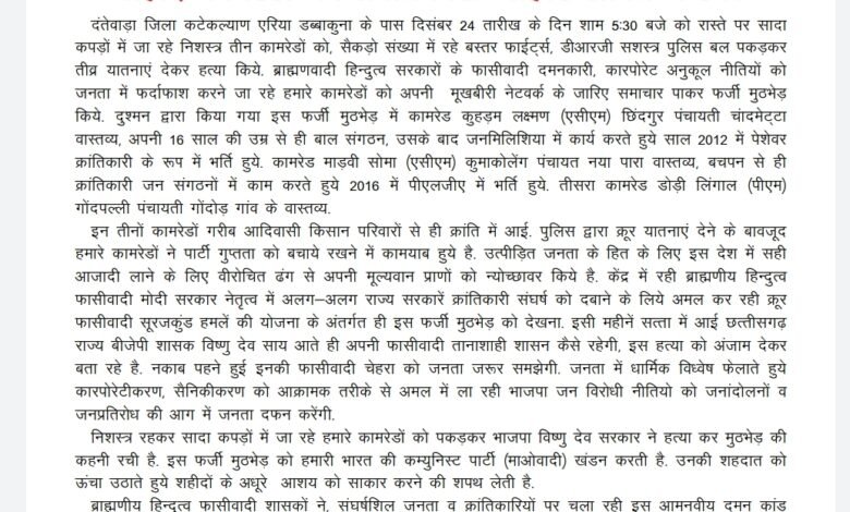 दरभा डिविजन के सचिव साईनाथ ने जारी किया है नक्सल प्रेस नोट