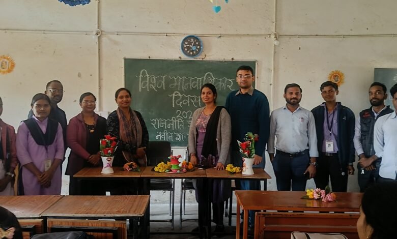 रायपुर/नवीन शासकीय महाविद्यालय कुसमरा में प्राचार्य डॉ सुशील कुमार इक्का के संरक्षण एवं मार्गदर्शन में विश्व मानवाधिकार दिवस का सफल आयोजन किया गया। कार्यक्रम का संचालन राजनीति शास्त्र विभाग के अतिथि व्याख्याता देवकुमार चौहान द्वारा किया गया। कार्यक्रम में व्याख्यान हेतु महाविद्यालय के नोडल सहा. प्रा. डॉ तेजेश्वरी मंडावी (गणित) एवं सहा. प्रा. अनीता पटेल (समाजशास्त्र) उपस्थित रही। व्याख्यान में उन्होंने बताया कि मानवाधिकार वह अधिकार है जो मानव होने के नाते जन्म से व्यक्ति को मिला होता है,जिसे संयुक्त राष्ट्र संघ द्वारा 10 दिसंबर 1948 को सार्वभौमिक तरीके से घोषणा करके पूरे विश्व के लिए कानूनी रूप से  लागू किया गया था। आगे उन्होंने बताया कि मानव अधिकार वे अधिकार होते है जो व्यक्ति के संपूर्ण व्यक्तिगत विकास के लिए महत्वपूर्ण और उत्तरदायी होते है, इन अधिकारों के बिना व्यक्ति अपना सामाजिक,राजनैतिक,आर्थिक,और सांस्कृतिक विकास नहीं कर सकता। आगे मानवाधिकार के बारे में बताया गया। कार्यकम में महाविद्यालय के नोडल प्रो. डॉ तेजेश्वरी मंडावी (गणित), सहा. प्रा. अनीता पटेल (हिंदी), सहा. प्रा. अनीता पटेल (समाजशास्त्र), सहा. प्रा. ईश्वर प्रसाद साहू (रासेयो कार्यक्रम अधिकारी), सहा. प्रा. खुशबू तिवारी (वाणिज्य), सहा. प्रा. मिताली पटेल (जंतुशास्त्र), सहा. प्रा. राजकुमार खड़िया (वाणिज्य), सहा. प्रा. वैभव पारा (IQAC प्रभारी) अतिथि व्याख्याता अयरोज तिर्की (अर्थशास्त्र),निखिल नायक (भौतिकी),विकास कुमार नेताम (सहायक ग्रेड 02), ललित राठिया (सहायक ग्रेड 03), रामकुमार दिव्य (प्रयोगशाला तकनीशियन) सुषमा प्रधान (प्रयोगशाला तकनीशियन) एवं समस्त छात्र छात्राओं की सक्रिय सहभागिता रही।।