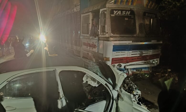 बिलाईगढ़ थाना क्षेत्र अंतर्गत दुम्हनी मोड़ के पास एक बार फिर दर्दनाक सड़क हादसा सामने आया है। तेज रफ्तार कार और ट्रक के बीच हुई जबरदस्त भिड़ंत में कार सवार दो युवकों की मौके पर ही मौत हो गई। मृतकों की पहचान यशवंत टंडन और रूपेंद्र कुमार देवांगन के रूप में हुई है। बताया जा रहा है कि टक्कर इतनी भीषण थी कि कार के परखच्चे उड़ गए, जिससे दोनों युवकों को बचाने का कोई मौका नहीं मिला।