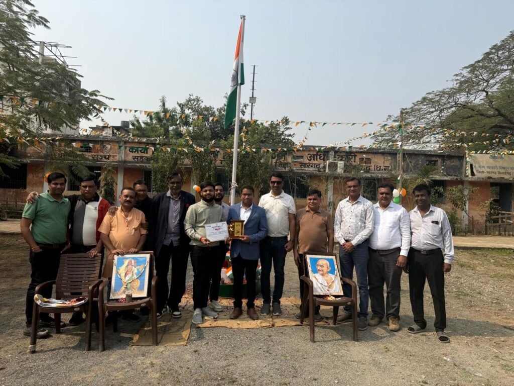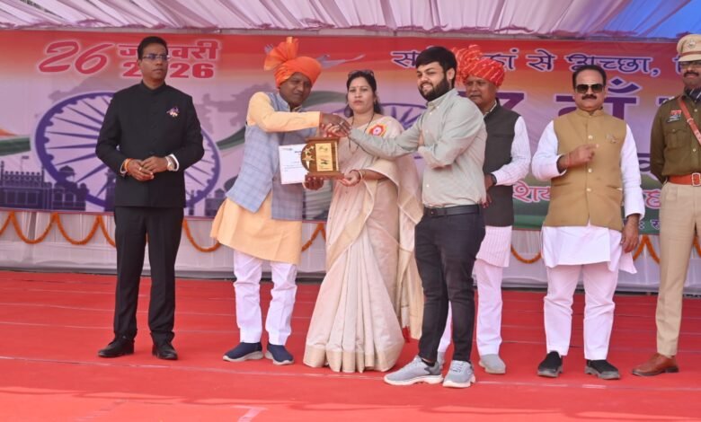 राधेश्याम राठिया के करकमलों से उत्कृष्ट कार्य के लिए महालक्ष्मी राइस मिल के संचालक राहुल अग्रवाल सम्मानित