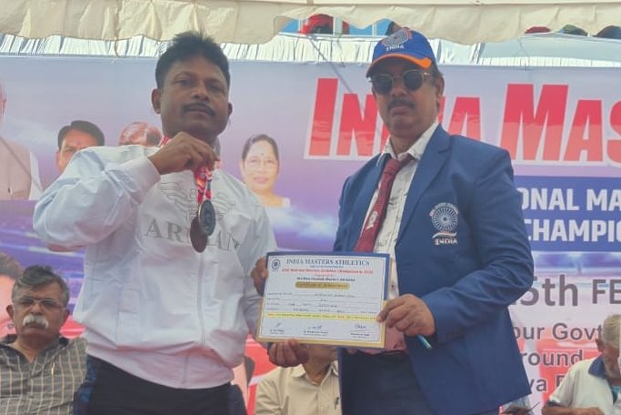 मास्टर एथलेटिक्स में प्रधान पाठक जुगेंद्र प्रसाद साहू ने जीते 4 पदक, स्कूल में हुआ भव्य स्वागत