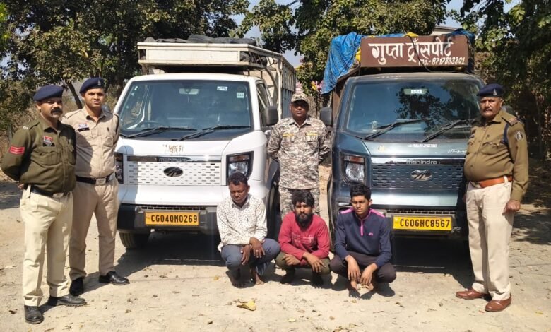 विवरण- मामले का सक्षिप्त विवरण इस प्रकार हैं कि दिनाक 26/02/2026 को सूचना मिला कि दो नग वाहन 01. महेन्द्रा वीरो स्लेटी कलर का क्रमांक CG 06-HC-8567, 02. महेन्द्रा वीरो सफेद रंग का क्रमांक CG 04-QM-0269 में भैंस एवं भैंसा मवेशी को क्रुरता पूर्वक भरकर बिलाईगढ तरफ से उडीसा ले जा रहे है कि सूचना पर थाना प्रभारी पुरेन्द्र मल्होत्रा के हमराह सउनि.देवनारायण साहू आरक्षक 68,388,283,254,271 के घेराबंदी कर वाहन 01. महेन्द्रा वीरो स्लेटी कलर क्रमांक CG 06-HC-8567, 02. महेन्द्रा वीरो सफेद रंग क्रमांक CG 04-QM-0269 को पकड़ने से महेन्द्रा वीरो वाहन क्रमांक CG 06-HC-8567 में 02 नग भैंस 03 नग भैंसा तथा दुसरे वाहन महेन्द्रा वीरो क्रमांक CG 04-QM-0269 में 02 नग भैंस 03 नग भैंसा कुल 10 नग ठुस ठुस कर क्रुरता पूर्वक भरा था जिस सम्बंध में चालक सूरज गुप्ता तथा दुसरे वाहन के चालक भीखम सिन्हा ने भैंस भैंसा मवेशी को उडीसा राज्य ले जाना बताये जिन्हें नोटिस देने पर वाहन में मवेशी परिवहन करने के सम्बंध में वैध दस्तावेज नहीं होना लिखित में दिये मौके पर देहाती नालसी लिया गया वाहन चालको सूरज गुप्ता, भीखम सिन्हा एवं केबिन में बैठे कबीर खान का मेमोरेंण्डम कथन लेकर वाहन महेन्द्रा वीरो क्रमांक CG 06-HC-8567 एवं महेन्द्रा वीरो क्रमांक CG 04-QM-0269 में 05-05 नग भैंस, भैंसा मवेशी भरे किमती 1730000/रूपये तथा 04 नग मोबाईल फोन किमती 16300/रूपये जुमला किमती 1746300/रूपये को सूरज गुप्ता, भीखम सिन्हा, कबीर खान से जप्ती किया गया। आरोपीयों के द्वारा अपराध धारा 4,6,10 छ.ग. कृषिक पशु परिरक्षण अधिनियम 2004, पशुओं के प्रति क्रुरता का निवारण अधिनियम 1960 की धारा 11(घ) का अपराध घटित करना पाये जाने से आरोपीयों के विरूध्द अपराध पंजीबध्द कर विवेचना में लिया गया। दौरान विवेचना 01- सूरज गुप्ता पिता भगवान प्रसाद गुप्ता उम्र 42 साल साकिन कोमाखान सुवरमाल थाना कोमाखान जिला महासमुंद 02. भीखम सिन्हा पिता पुरूषोत्तम सिन्हा उम्र 25 साल साकिन बिहाझर थाना बागबहरा जिला महासमुंद 03. कबीर खान पिता रहीस खान उम्र 25 साल साकिन सागंज अर्जुन नगर चौराहा थाना सागंज जिला आगरा उत्तरप्रदेश हाल मुकाम ट्रांसपोर्ट नगर पार्किंग नं 04 चांद होटल के पास थाना बंजारी जिला रायपुर छ.ग. से पुछताछ कर मेमोरण्डम कथन लिया गया जो अपराध घटित करना स्वीकार करने पर आज दिनांक 26/02/26 को गिरप्तार कर गिरफतारी की सुचना उसके परिजन को देकर माननीय जेएमएफसी न्यायालय बिलाईगढ़ पेश कर रिमाण्ड पर भेजा गया है। जिसमें अन्य आरोपी की संलिप्तता होने की संभावना है।