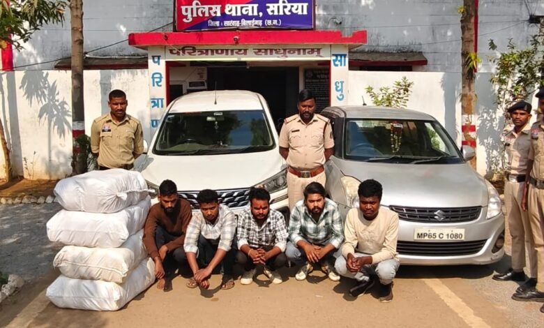 विवरण इस प्रकार है कि दिनांक 19/03/2026को दौरान पेट्रोलिंग जरिये मुखबीर सुचना मिला कि एक सफेद रंग की आर्टिगा कार क्र MP 20 CM 7737 में कुछ व्यक्ति उड़ीसा से गांजा लेकर शहडोल जाने वाले है तथा उसके आगे –आगे एक स्विफ्ट कार क्र MP 62 C 1080 पायलेटिंग में चल रही है सूचना पर भुलुमुडा — सरिया मेन रोड मे घेराबंदी कर दोनों कार को पकड़ा गया। आर्टिगा कार चालक से नाम पता पूछने पर अपना नाम पूर्णानंद सिंह उर्फ राहुल पिता दिगंबर उम्र 34 वर्ष सा पांडव नगर शहडोल जिला शहडोल ( मध्यप्रदेश) का होना बताया। गवाहों के समक्ष आर्टिगा कार की तलाशी लेने पर कार के अंदर 120 पैकेट में कुल 125 किलो 07 ग्राम अवैध मादक पदार्थ गांजा मिला।