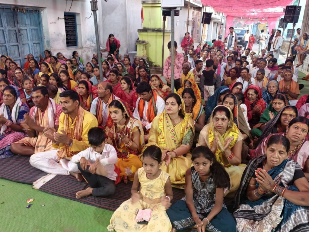 कथा व्यास पंडित गुरु कुमार त्रिपाठी (धर्म प्रवक्ता)ने अपनी मधुर वाणी से भगवान की कथा सुनाई। उनके भजनों और कथा के प्रसंगों को सुनकर वहां मौजूद भक्त भाव-विभोर हो गए और खुशी से झूमने लगे।
