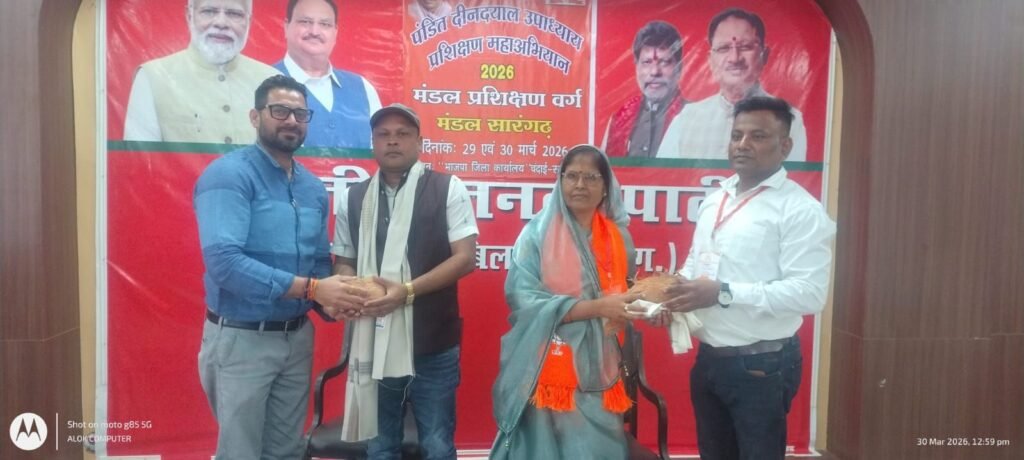 सारंगढ़ क्षेत्र में पंडित दीनदयाल उपाध्याय प्रशिक्षण महाभियान 2026 के अंतर्गत एक महत्वपूर्ण कार्यक्रम का आयोजन किया गया, जिसमें सारंगढ़ विधानसभा के मण्डल सारंगढ़ एवं बिलाईगढ़ विधानसभा के मण्डल बिलाईगढ़ के कार्यकर्ताओं ने सक्रिय भागीदारी निभाई। इस अवसर पर “बूथ मैनेजमेंट” और “मन की बात” जैसे महत्वपूर्ण विषयों पर विस्तृत चर्चा करते हुए कार्यकर्ताओं को संगठनात्मक मजबूती के लिए मार्गदर्शन प्रदान किया गया।