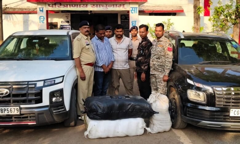 विवरण इस प्रकार है कि दिनांक 30/03/2026को दौरान पेट्रोलिंग जरिये मुखबीर सुचना मिला कि एक काले रंग की वेन्यू कार क्र CG 12 VV 2342 में कुछ व्यक्ति उड़ीसा से गांजा लेकर कोरबा जाने वाले है तथा उसके आगे –आगे एक क्रेटा कार क्र CG 12 BP 5679 पायलेटिंग में चल रही है सूचना पर कंचनपुर बैरियर पास मेन रोड मे घेराबंदी कर दोनों कार को पकड़ा गया। वेन्यू कार चालक से नाम पता पूछने पर अपना नाम रमेश सिदार उर्फ सोनू सिदार पिता स्व रामप्रसाद सा छुरी,थाना कटघोरा जिला कोरबा का होना बताया। गवाहों के समक्ष वेन्यू कार की तलाशी लेने पर कार के अंदर 70 पैकेट में कुल 73 किलो 345 ग्राम अवैध मादक पदार्थ गांजा मिला।