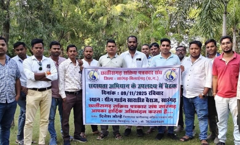 छत्तीसगढ़ सक्रिय पत्रकार संघ सारंगढ़-बिलाईगढ़ जिला इकाई की बैठक संपन्न, पत्रकार हितों को लेकर हुई महत्वपूर्ण चर्चा
