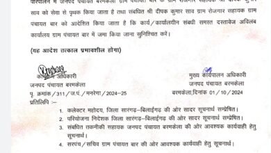सारंगढ़-बिलाईगढ़/ परियोजना निदेशक कार्यालय जिला ग्रामीण विकास प्रशासन योजना सारंगढ़ बिलाईगढ़ के द्वारा जारी पत्र के पालन में जनपद पंचायत…