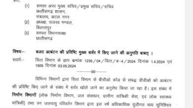 वित्त विभाग ने पत्र जारी किया सारंगढ़ बिलाईगढ़/छत्तीसगढ़ सरकार के वित्त विभाग ने राज्य के सभी विभाग सहित अध्यक्ष राजस्व…