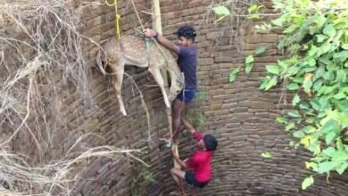 जंगल से भटककर कुएं में गिरे हिरण