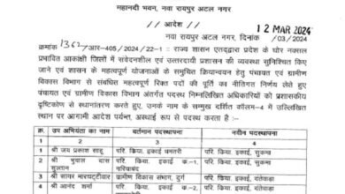रायपुर ट्रांसफर आदेश। राज्य की नई भाजपा सरकार ने लोकसभा चुनाव से पहले ही लगभग सभी विभागों में लंबे समय…