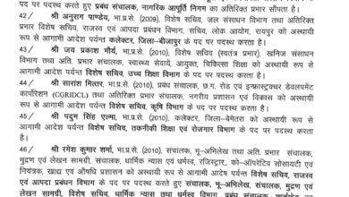 88 आईएएस के तबादले,सारंगढ़ बिलाईगढ़ जिले के नये कलेक्टर श्री कुमार लाल चौहान होगे ।