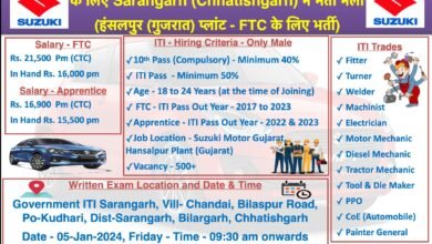 सारंगढ़ आईटीआई छिंद में 5 जनवरी को सुजुकी कंपनी के लिए भर्ती कैम्प