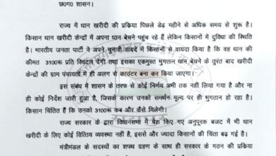 ₹3100 में धान खरीदी पर मांगी जानकारी मोदी की गारंटी में किए गए वादे को पूर्ण करने किया आग्रह धान…