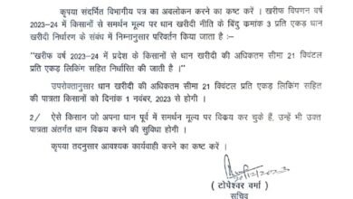 राज्य सरकार ने जारी किया आदेश जो बेच चुके है धान, उन्हे भी मिलेगा लाभ प्रदेश में 1 नवंबर से…