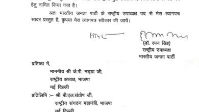 पूर्व मुख्यमंत्री डॉ रमन सिंह ने भाजपा के राष्ट्रीय उपाध्यक्ष पद से दिया त्यागपत्र