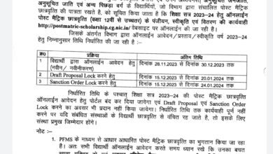 पोस्ट मैट्रिक छात्रवृत्ति के लिए आवेदन की अंतिम 30 दिसंबर