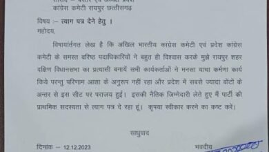 रायपुर/कांग्रेस की प्राथमिक सदस्यता से दिया इस्तीफादक्षिण विधानसभा में चुनाव में हार की बताया कारण हार की नैतिक जिम्मेदारी लेते…