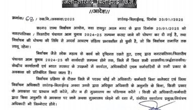 बिना अनुमति अवकाश और मुख्यालय छोड़ने पर होगी कार्यवाही सारंगढ़ बिलाईगढ़,/निर्वाचन आचार संहिता लागू होने पर छत्तीसगढ़ राज्य निर्वाचन आयोग…